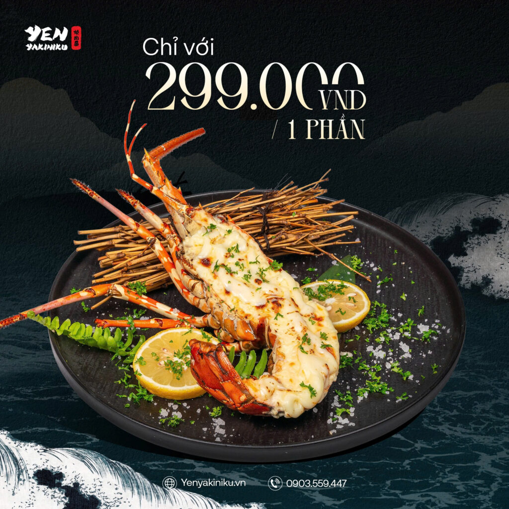 Bạn muốn trải nghiệm buffet cao cấp nhưng vẫn tiết kiệm? Yen Yakiniku mang đến món tôm hùm sốt phô mai hoặc sốt bơ tỏi, chế biến bởi đội ngũ đầu bếp chuyên nghiệp, giúp bữa tiệc buffet thêm phần thăng hoa và đáng nhớ.