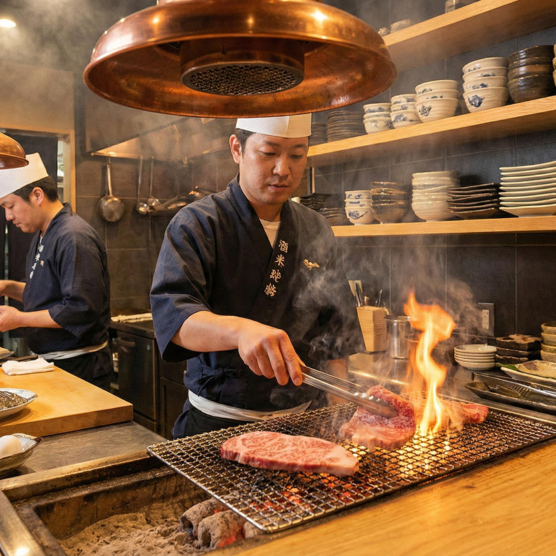 Đội ngũ đầu bếp giàu kinh nghiệm chế biến tỉ mỉ, kết hợp kỹ thuật nướng yakiniku truyền thống với lẩu shabu shabu hiện đại. Mỗi món ăn là sự hòa quyện giữa hương vị nguyên bản và sáng tạo, sẵn sàng phục vụ nóng hổi.