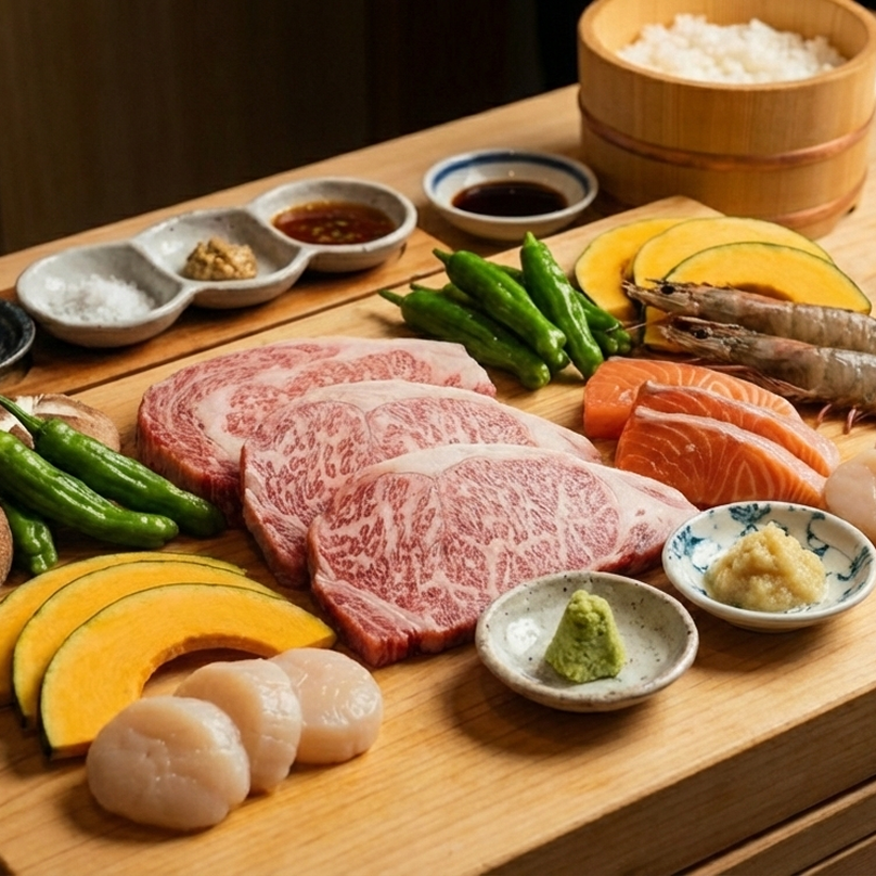 Chúng tôi chọn lọc kỹ lưỡng thịt bò Wagyu nhập khẩu Nhật Bản, hải sản tươi sống từ Na Uy và Đà Nẵng, cùng rau củ organic đảm bảo an toàn. Mọi nguyên liệu đều được kiểm tra nghiêm ngặt để giữ trọn vị tươi ngon chuẩn Nhật.